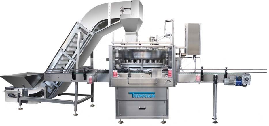 Macchina idonea al riempimento volumetrico di contenitori in vetro, banda stagnata o materiale plastico con prodotti alimentari in pezzi/a cubetti (vegetali, carne) o interi di piccola pezzatura (funghi, carciofini, olive, cipolline, mais, legumi, frutta, ecc.).